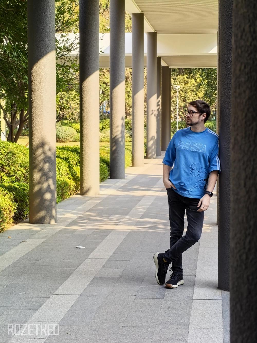 Камера тройная, блок не совсем круглый и заметно выпирает. Основной модуль (50 Мп, сенсор RYYB, 1/1,28″) с физической 10‑ступенчатой диафрагмой f/1,49–f/4,0. Увеличение захвата света на 31%, по сравнению с предшественниками, позволяет получать детализированные снимки даже в условиях слабой освещённости.