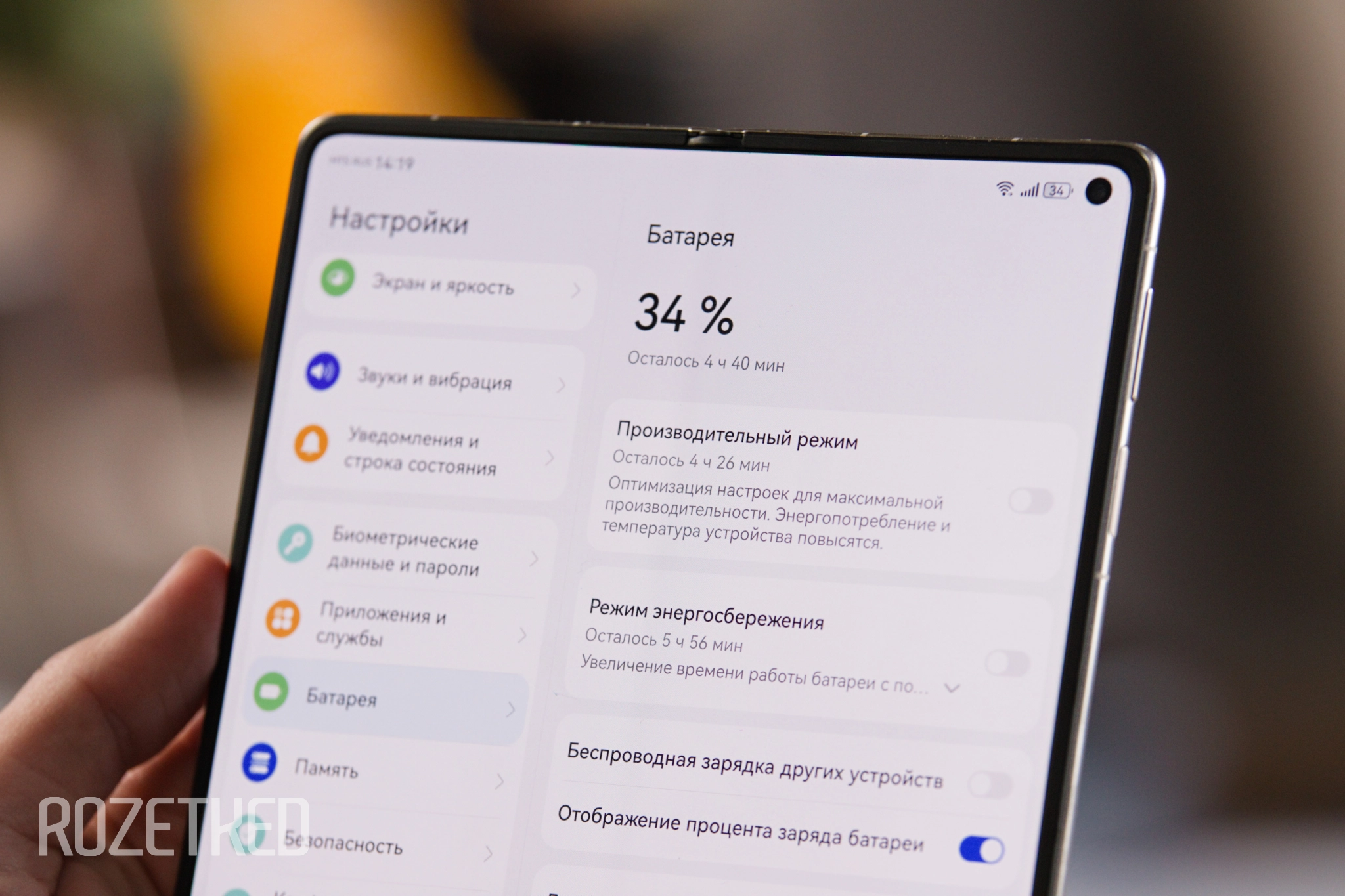 Аккумулятор установлен ёмкостью 5600 мАч, что достойно для раскладного смартфона с тонкими половинками. Уровень автономности чуть меньше, чем у стандартного моноблочного современного смартфона, но и не провальный.