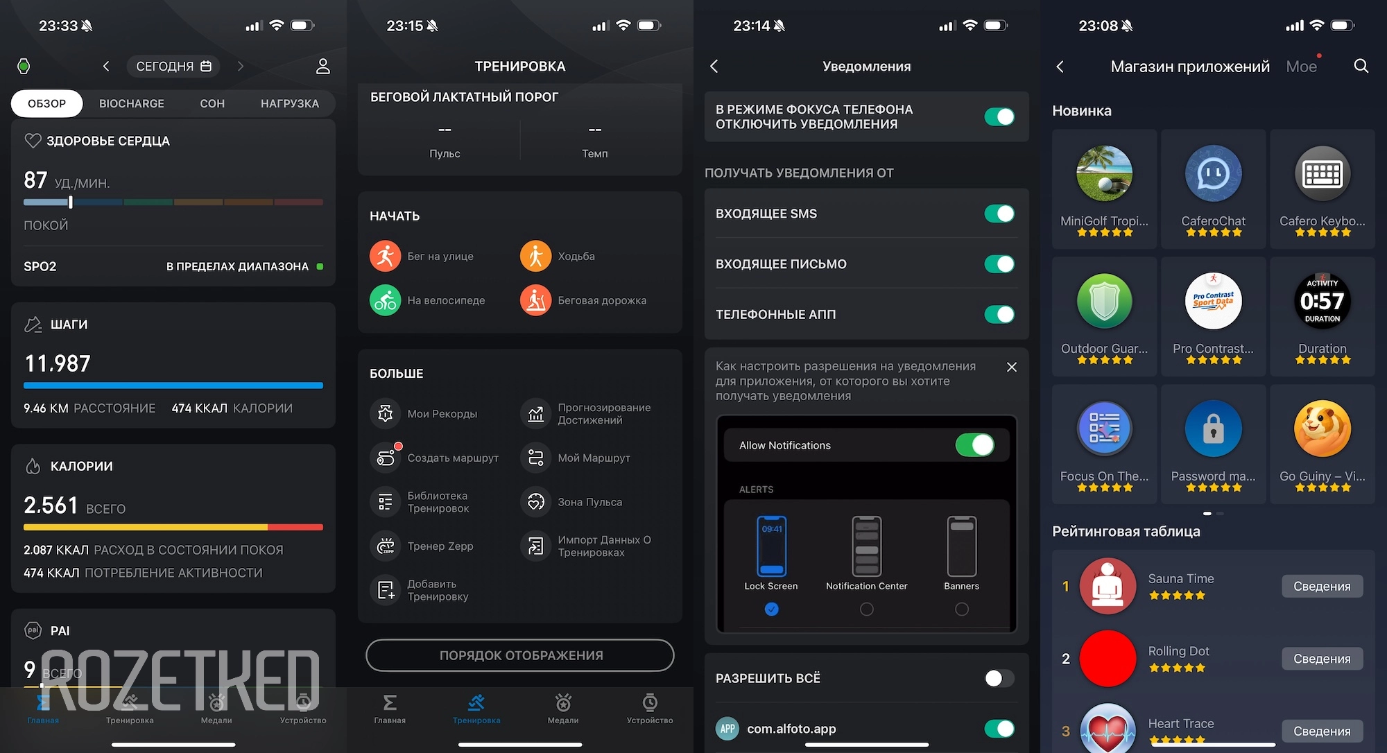 У часов есть Zepp Store — магазин мини-приложений и циферблатов прямо в Zepp App. Там можно найти трекеры пульса, аналитику сна, программы для тренировок, а также калькуляторы и сервисы для обмена сообщениями, если вдруг не хватает встроенных функций.