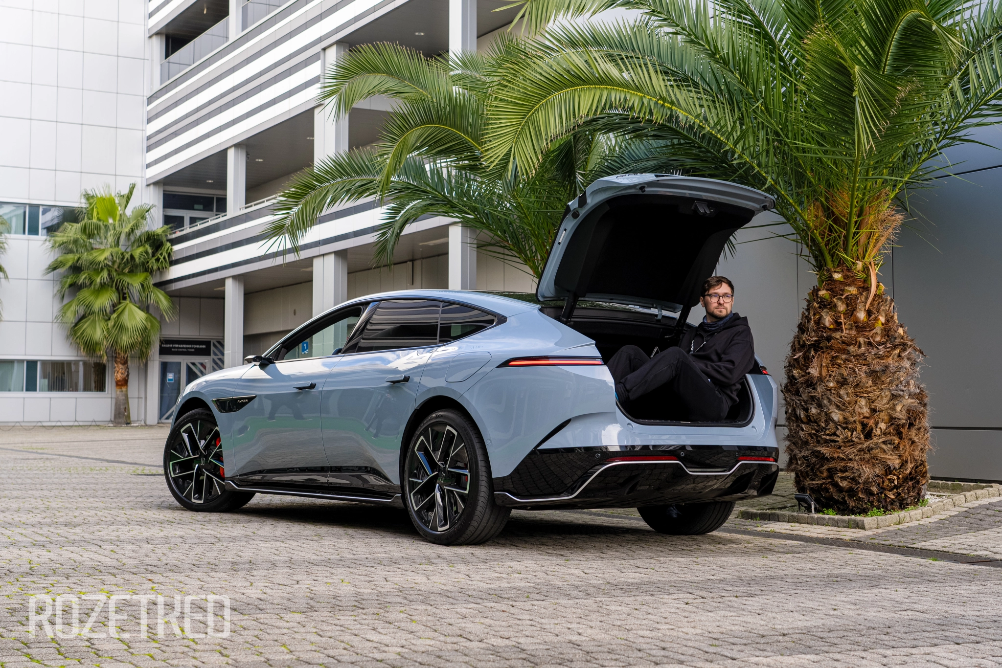 В целом, при создании авто вдохновлялись спорткарами, среди которых Ferrari, Lamborghini и McLaren. Не случайно тут сзади есть адаптивный спойлер: открывается сам на скорости больше 90 км/ч, в режиме «спорт» или ручками. Добавляет +110 Н прижимной силы на скорости выше 120 км/ч. Ещё из интересного: сзади, помимо комбинированных фонарей и противотуманки, подсветка логотипа.