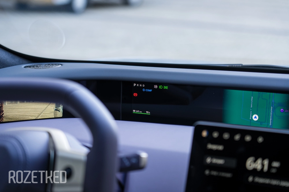 И раз уж перешли вперёд, то нужно сразу обратить внимание на огромный 35,4-дюймовый 4К-дисплей приборной панели. Он поддерживает виджеты и вывод информации с боковых камер. Соответственно, с таким решением автоматически отпадает необходимость в проекционном дисплее.