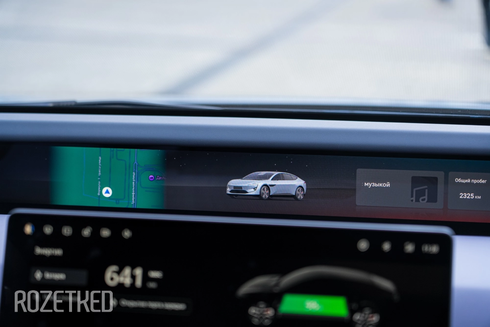 Есть беспроводная поддержка CarPlay и Android Auto, также есть встроенная eSIM от МТС — пакет трафика уже оплачен, а для обновлений заявлен неограниченный трафик. Интересно, что по умолчанию здесь используются Petal Maps от Huawei, которые в России отдельно не развиваются, но тем не менее ведут себя иногда даже лучше отечественных конкурентов. Позже в компании обещали добавить сервисы «Яндекса».
