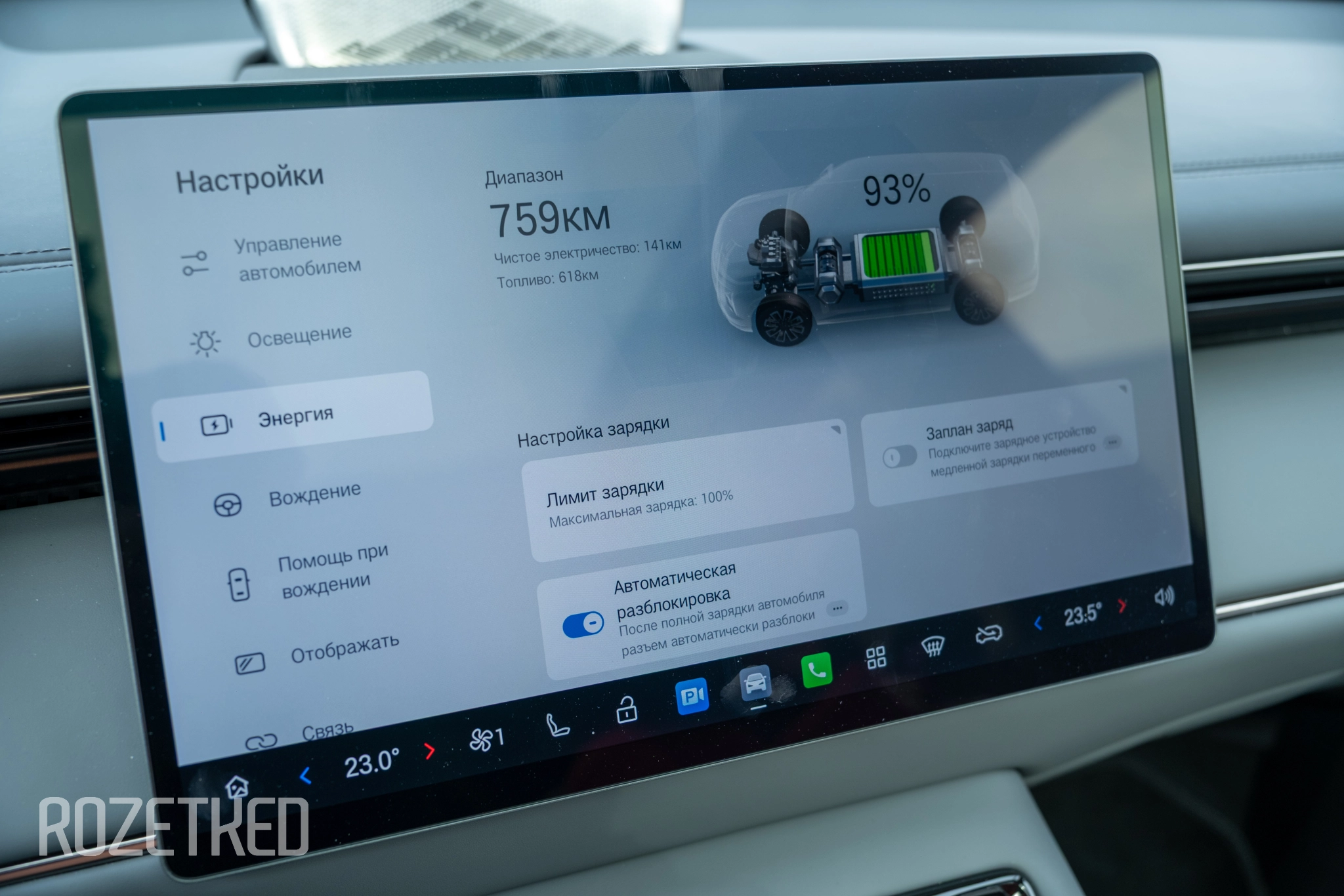 Батарея — 36,3 кВт·ч, литий-железо-фосфатная, с фирменной технологией Magazine Battery 2.0, которая представляет из себя ячеистую структуру. Поддерживается быстрая зарядка до 110 кВт: с 30 до 80% за 18 минут. Разъём — CCS 2 Combo, самый распространённый в России, так что подзарядиться не будет проблемой.