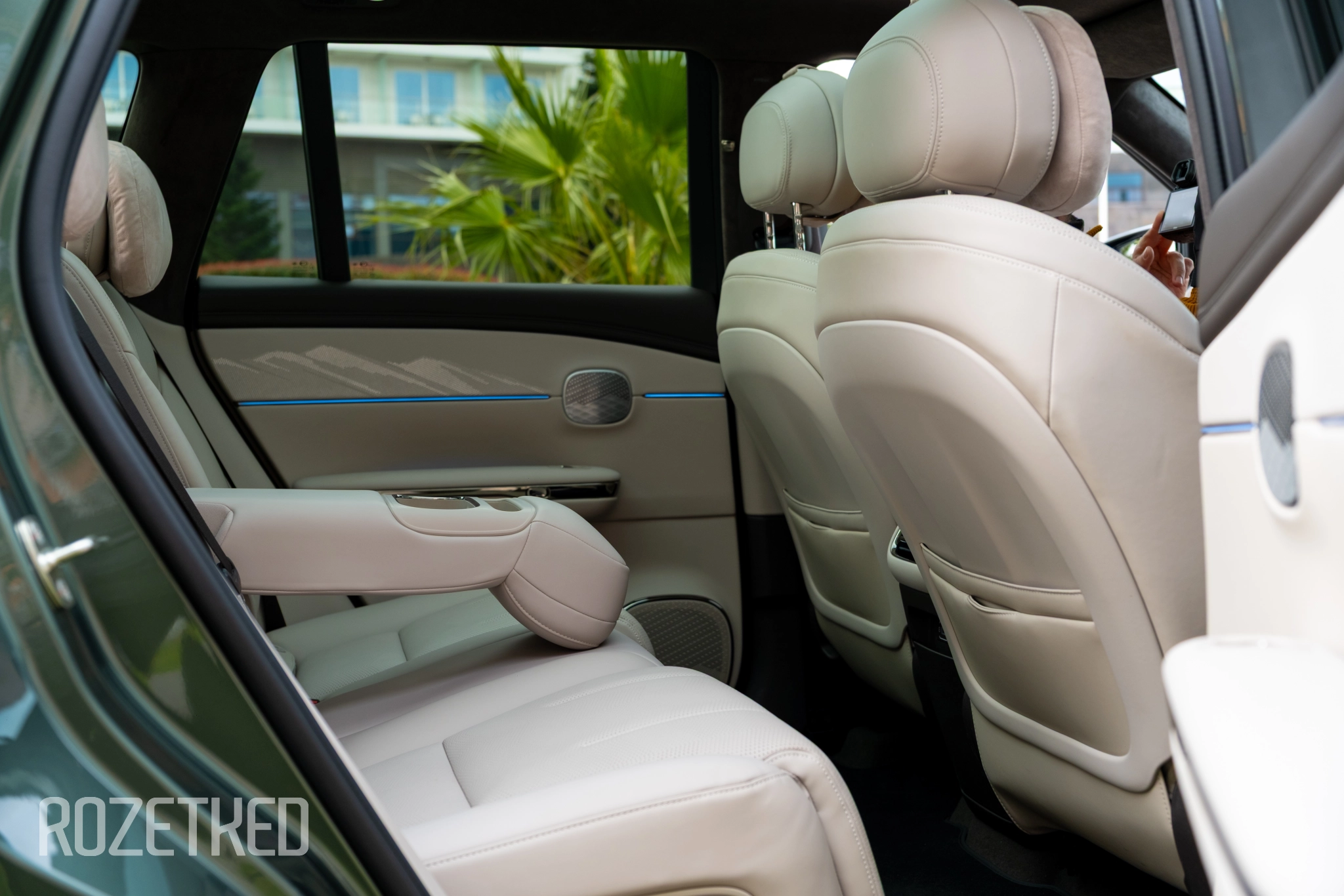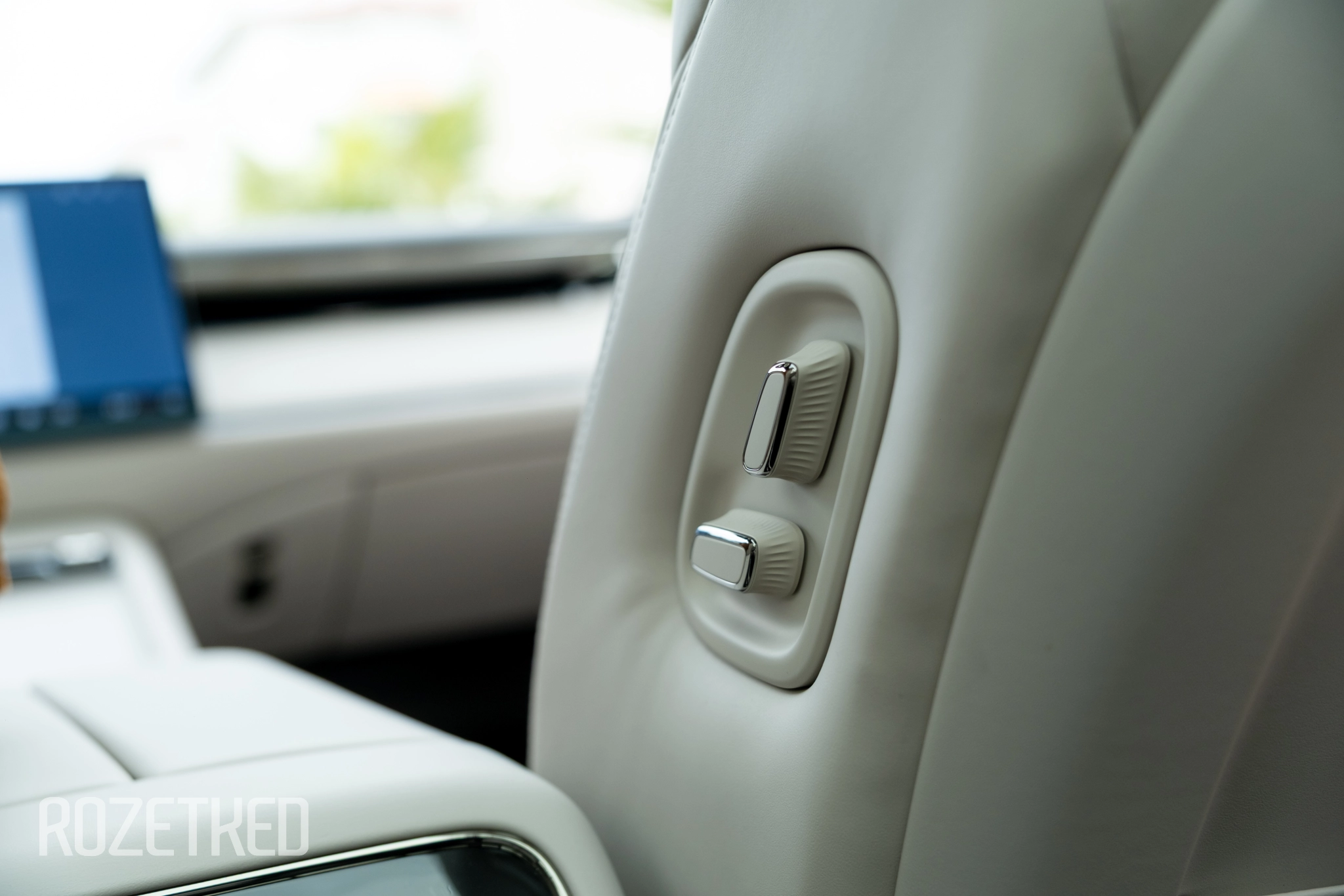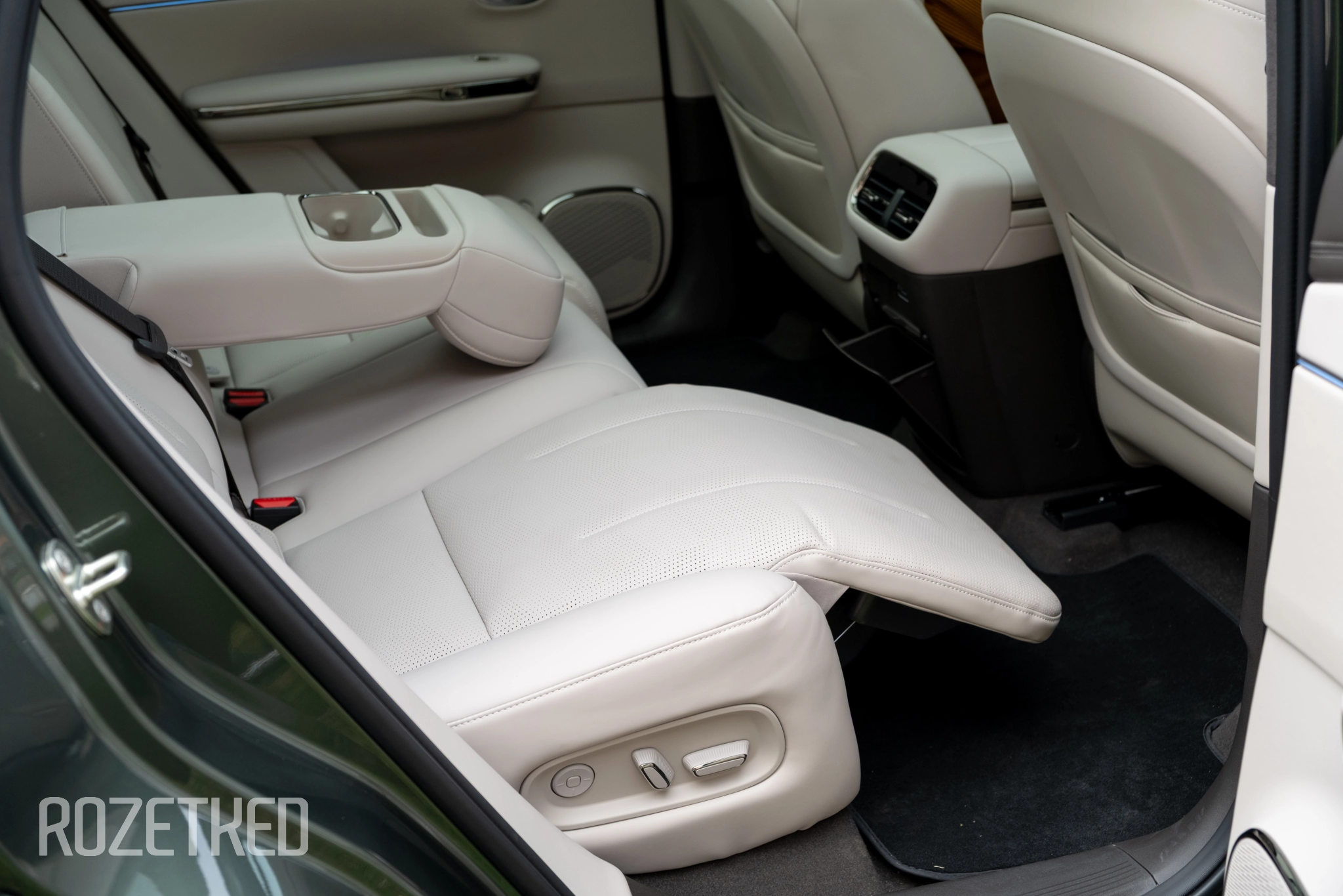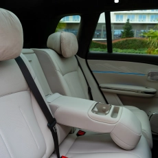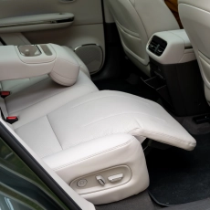 Также во всех четырёх посадочных местах одинаковый набор опций: подогрев, обдув, массаж и электрорегулировка. Да, даже задние кресла откидываются. И, более того, у заднего правого пассажира есть оттоманка, которую обычно дают пассажиру спереди. Не уверен, что это лучшее решение, потому что переднее кресло придётся двигать вперёд — для этого сбоку сделали дублирующие кнопки регулировки. С одной стороны, удобно, с другой — их нельзя отключить, поэтому если у вас сзади ездят дети или просто «юмористы», то они могут баловаться, двигая переднего пассажира.