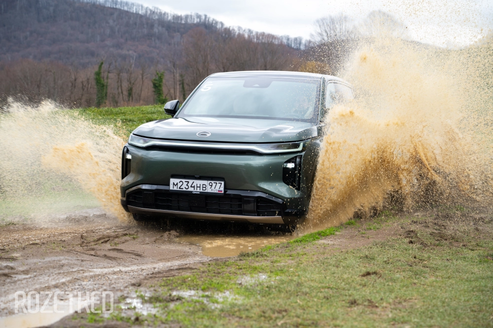 По небольшому участку грунтовки прошлись без вопросов. Есть режим бездорожья, где подключается полный привод — цепкий, без пробуксовки. То есть где-то за городом грязь помесить и потом припарковаться где-нибудь на камнях с диагональным вывесом — в целом, можно.