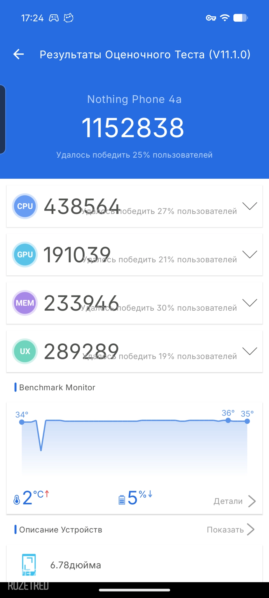 На фоне китайских производителей с кремний-углеродными аккумуляторами новый смартфон как-то теряется. У Nothing Phone (4a) скромные по меркам 2026 года 5080 мА*ч. Впрочем, для «ашек» это рекордный показатель. Причём по ощущениям автономность очень достойная и за день смартфон разрядить сложно. За час просмотра видео на максимальной яркости он теряет 9-10%, а на среднем уровне уходит 6-7%.