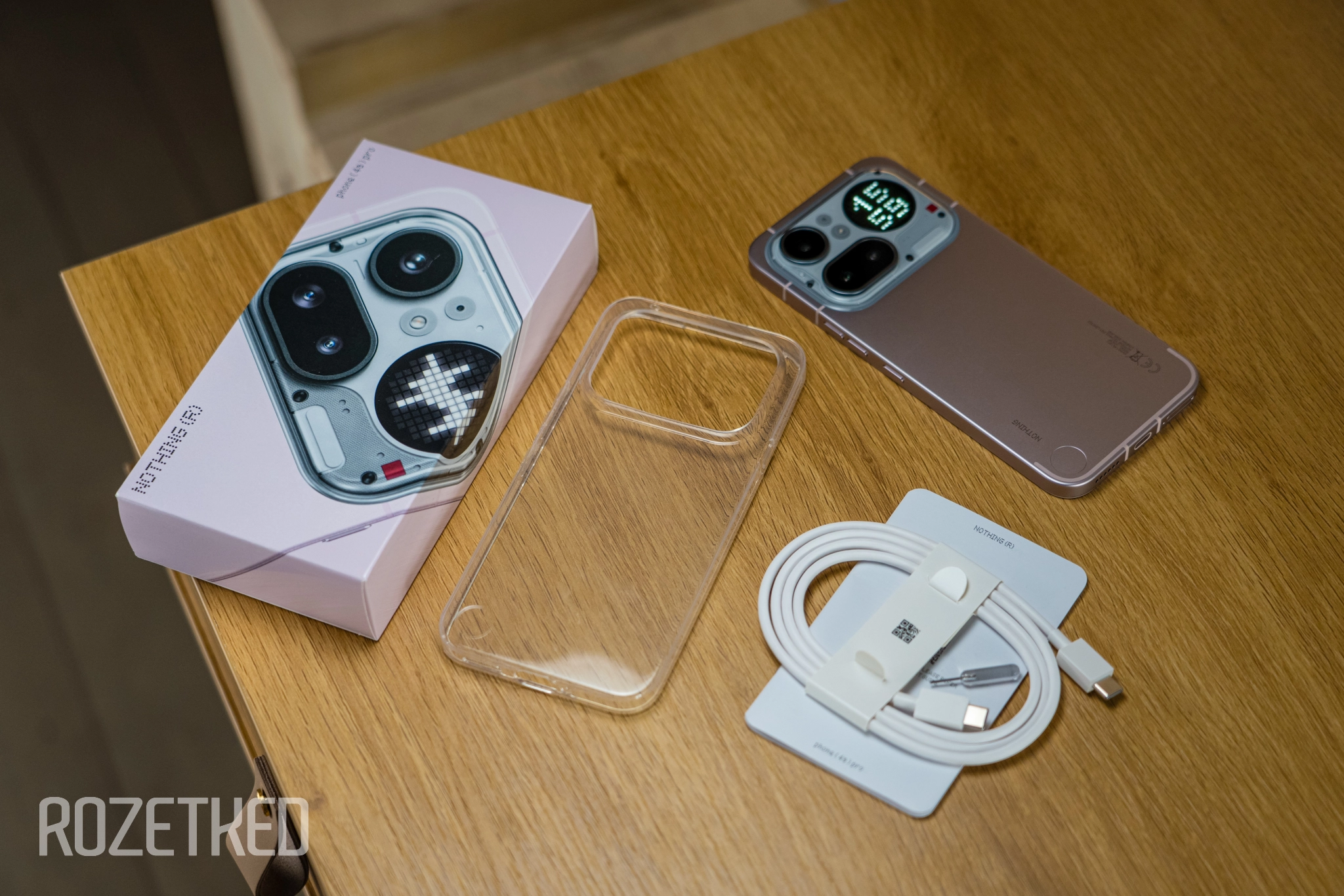 Это первый смартфон Nothing в металлическом корпусе и в совершенно другом дизайне. Серебристый цвет — будто база MacBook. Очень нравится. А для любителей прекрасного сделали розовую версию — почему бы и нет?