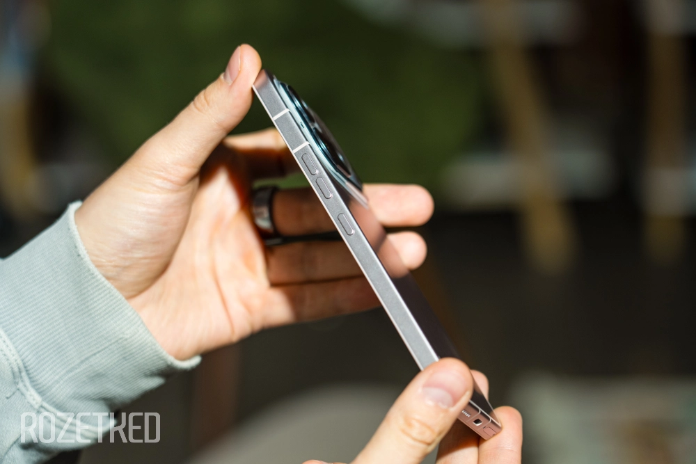 Боковые грани тоже алюминиевые, но есть пластиковая окантовка, которая немного портит внешний вид. Все нужные кнопки (кнопка питания и качелька регулировки громкости) расположились справа, а все ненужные (Essential Key) — слева. Раньше было, как на iPhone, и было удобнее.