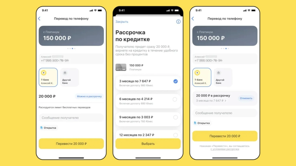 «Т-Банк» запустил денежные переводы в рассрочку. Новая функция позволяет переводить средства другим людям, а возвращать их банку по частям. Беспроцентный период для таких операций сохраняется, однако за сам перевод спишут фиксированную комиссию.